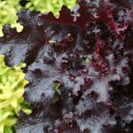 Heuchera 'Black Beauty' features deep red-purple, glossy, ruffled leaves. Foliage has a somewhat upright habit, catching and reflecting the sun from every direction. Forms a nice compact mound. Heat and humidity tolerant, a great choice for southern gardeners. An introduction from Terra Nova. Alum root. PP#13288.