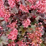 This plant is a Heuchera villosa hybrid. The villosa species is a robust grower with an increased tolerance of high heat and humidity over other species. Most villosas produce flowers in midsummer, though they are usually grown more for their fantastic foliage. H. villosa is native to the southeastern United States. If you live in the south this plant is a great choice for your garden!