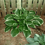 Hosta 'Lakeside Jazzy Jane' features shiny, slightly wavy, dark green leaves with 3/4" pure white margins. Individual leaves measure 10" long by 8" wide. A hybrid of 'Lakeside El Roy'. It has been compared to hosta 'Christmas Tree', but with a darker green color. (Chastain 2002)